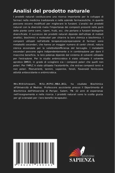 I prodotti naturali costituiscono una risorsa importante per lo sviluppo di farmaci nella medicina tradizionale e nelle aziende farmaceutiche, in quanto possono essere modificati per migliorare le funzioni. L'analisi dei prodotti naturali con la diversità rivela l'importanza dei composti presenti nelle parti delle piante come semi, rizomi, frutti, ecc. che portano a funzioni biologiche diversificate. Il successo dei prodotti naturali dipende dall'utilizzo di metodi analitici, biochimici e molecolari per chiarire la loro chimica e biochimica. I composti utilizzati nell'attività terapeutica/preparazione di farmaci sono metaboliti secondari, che hanno un maggior numero di centri chirali, natura sterica essenziale per la selettività/efficienza del bersaglio. I metaboliti secondari possono agire indipendentemente o in combinazione per dare il massimo beneficio, la loro potenza dipende dal sistema di solventi utilizzato per l'estrazione. Per lo studio antimicrobico è stato utilizzato il solvente aprotico DMSO, in grado di sciogliere sia i composti polari che quelli non polari. Per l'HPLC è stato utilizzato l'acetonitrile, che estrae composti ionici e non polari. Fitonutrienti, tannini, saponine, fenoli, flavonoidi forniscono attività antiossidante e antimicrobica.