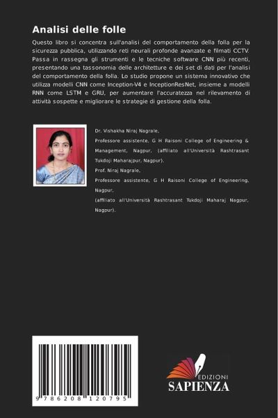 Questo libro si concentra sull'analisi del comportamento della folla per la sicurezza pubblica, utilizzando reti neurali profonde avanzate e filmati CCTV. Passa in rassegna gli strumenti e le tecniche software CNN più recenti, presentando una tassonomia delle architetture e dei set di dati per l'analisi del comportamento della folla. Lo studio propone un sistema innovativo che utilizza modelli CNN come Inception-V4 e InceptionResNet, insieme a modelli RNN come LSTM e GRU, per aumentare l'accuratezza nel rilevamento di attività sospette e migliorare le strategie di gestione della folla.