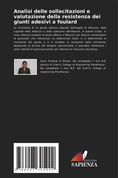 La resistenza di un giunto adesivo dipende dall'angolo di fettuccia, dalla rugosità della fettuccia e dallo spessore dell'adesivo. A questo scopo, si sono ottenuti campioni di giunti adesivi a fettuccia con diverse combinazioni di parametri che influiscono su determinati livelli, si è determinata la resistenza del giunto e si è studiata la variazione della resistenza. Applicando la tecnica del disegno sperimentale, è possibile individuare i valori ottimali di questi parametri per ottenere la massima resistenza.