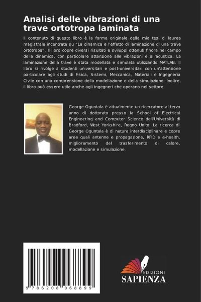 Il contenuto di questo libro è la forma originale della mia tesi di laurea magistrale incentrata su ¿La dinamica e l'effetto di laminazione di una trave ortotropä. Il libro copre diversi risultati e sviluppi ottenuti finora nel campo della dinamica, con particolare attenzione alle vibrazioni e all'acustica. La laminazione della trave è stata modellata e simulata utilizzando MATLAB. Il libro si rivolge a studenti universitari e post-universitari con un'attenzione particolare agli studi di Fisica, Sistemi, Meccanica, Materiali e Ingegneria Civile con una comprensione della modellazione e della simulazione. Inoltre, il libro può essere utile anche agli ingegneri che operano nel settore.