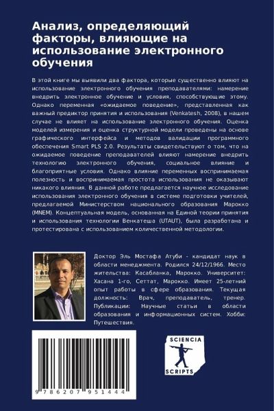 V ätoj knige my wyqwili dwa faktora, kotorye suschestwenno wliqüt na ispol'zowanie älektronnogo obucheniq prepodawatelqmi: namerenie wnedrit' älektronnoe obuchenie i uslowiq, sposobstwuüschie ätomu. Odnako peremennaq «ozhidaemoe powedenie», predstawlennaq kak wazhnyj prediktor prinqtiq i ispol'zowaniq (Venkatesh, 2008), w nashem sluchae ne wliqet na ispol'zowanie älektronnogo obucheniq. Ocenka modelej izmereniq i ocenka strukturnoj modeli prowedeny na osnowe graficheskogo interfejsa i metodow walidacii programmnogo obespecheniq Smart PLS 2.0. Rezul'taty swidetel'stwuüt o tom, chto na ozhidaemoe powedenie prepodawatelej wliqüt namerenie wnedrit' tehnologiü älektronnogo obucheniq, social'noe wliqnie i blagopriqtnye uslowiq. Odnako wliqnie peremennyh wosprinimaemaq poleznost' i wosprinimaemaq prostota ispol'zowaniq ne okazywaüt nikakogo wliqniq. V dannoj rabote predlagaetsq nauchnoe issledowanie ispol'zowaniq älektronnogo obucheniq w sisteme podgotowki uchitelej, predlagaemoj Ministerstwom nacional'nogo obrazowaniq Marokko (MNEM). Konceptual'naq model', osnowannaq na Edinoj teorii prinqtiq i ispol'zowaniq tehnologii Venkatesha (UTAUT), byla razrabotana i protestirowana s ispol'zowaniem kolichestwennoj metodologii.