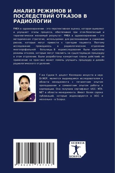 FMEA w zdrawoohranenii - äto perspektiwnaq ocenka, kotoraq wyqwlqet i uluchshaet ätapy processa, obespechiwaq pri ätom bezopasnyj i terapewticheski zhelaemyj rezul'tat. FMEA w zdrawoohranenii - äto metodicheskaq strategiq, ispol'zuemaq dlq raspoznawaniq i snizheniq riskow, kotorye mogut priwesti k tragedii pacienta. Poätomu issledowanie prowodilos' w radiologicheskom otdelenii mnogoprofil'noj bol'nicy. V hodeissledowaniq byli wyqsneny rezhimy otkazow, kotorye mogut powliqt' na suschestwuüschuü proceduru w ätom otdelenii. Byli razrabotany konkretnye plany dejstwij; ih primenenie na praktike mozhet pomoch' uluchshit' proceduru i dizajn radiologicheskogo otdeleniq.