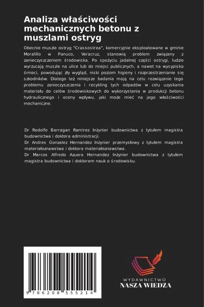 Obecnie muszle ostryg "Crassostrea", komercyjnie eksploatowane w gminie Moralillo w Panuco, Veracruz, stanowi¿ problem zwi¿zany z zanieczyszczeniem ¿rodowiska. Po spo¿yciu jadalnej cz¿¿ci ostrygi, ludzie wyrzucaj¿ muszle na ulice lub do miejsc publicznych, a nawet na wysypiska ¿mieci, powoduj¿c z¿y wygl¿d, niski poziom higieny i rozprzestrzenianie si¿ szkodników. Dlatego te¿ niniejsze badania maj¿ na celu rozwi¿zanie tego problemu zanieczyszczenia i recykling tych odpadów w celu uzyskania materiäu do celów ¿rodowiskowych do wykorzystania w produkcji betonu hydraulicznego i oceny wp¿ywu, jaki mo¿e mie¿ na jego w¿äciwo¿ci mechaniczne.