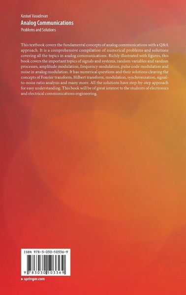 This textbook covers the fundamental concepts of analog communications with a Q&A approach. It is a comprehensive compilation of numerical problems and solutions covering all the topics in analog communications. Richly illustrated with figures, this book covers the important topics of signals and systems, random variables and random processes, amplitude modulation, frequency modulation, pulse code modulation and noise in analog modulation. It has numerical questions and their solutions clearing the concepts of Fourier transform, Hilbert transform, modulation, synchronization, signal-to-noise ratio analysis and many more. All the solutions have step-by-step approach for easy understanding. This book will be of great interest to the students of electronics and electrical communications engineering.