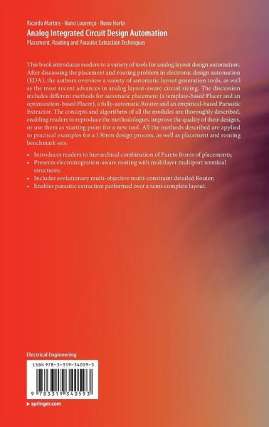 This book introduces readers to a variety of tools for analog layout design automation. After discussing the placement and routing problem in electronic design automation (EDA), the authors overview a variety of automatic layout generation tools, as well as the most recent advances in analog layout-aware circuit sizing. The discussion includes different methods for automatic placement (a template-based Placer and an optimization-based Placer), a fully-automatic Router and an empirical-based Parasitic Extractor. The concepts and algorithms of all the modules are thoroughly described, enabling readers to reproduce the methodologies, improve the quality of their designs, or use them as starting point for a new tool. All the methods described are applied to practical examples for a 130nm design process, as well as placement and routing benchmark sets.