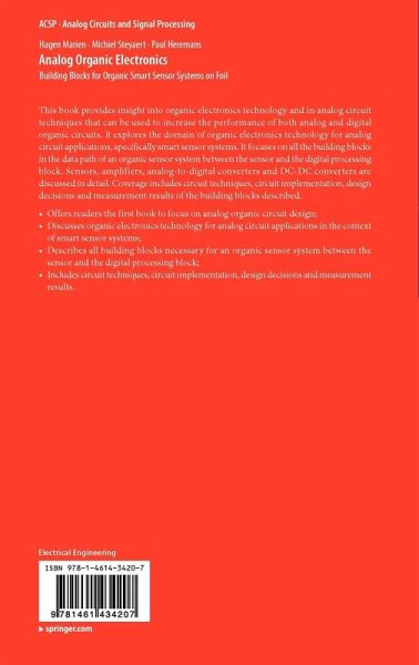This book provides insight into organic electronics technology and in analog circuit techniques that can be used to increase the performance of both analog and digital organic circuits. It explores the domain of organic electronics technology for analog circuit applications, specifically smart sensor systems. It focuses on all the building blocks in the data path of an organic sensor system between the sensor and the digital processing block. Sensors, amplifiers, analog-to-digital converters and DC-DC converters are discussed in detail. Coverage includes circuit techniques, circuit implementation, design decisions and measurement results of the building blocks described.