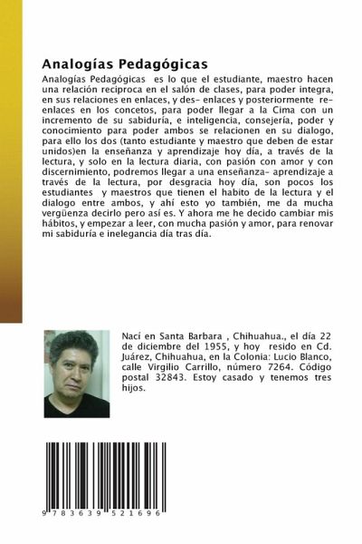Analogías Pedagógicas es lo que el estudiante, maestro hacen una relación reciproca en el salón de clases, para poder integra, en sus relaciones en enlaces, y des- enlaces y posteriormente re- enlaces en los concetos, para poder llegar a la Cima con un incremento de su sabiduría, e inteligencia, consejería, poder y conocimiento para poder ambos se relacionen en su dialogo, para ello los dos (tanto estudiante y maestro que deben de estar unidos)en la enseñanza y aprendizaje hoy día, a través de la lectura, y solo en la lectura diaria, con pasión con amor y con discernimiento, podremos llegar a una enseñanza- aprendizaje a través de la lectura, por desgracia hoy día, son pocos los estudiantes y maestros que tienen el habito de la lectura y el dialogo entre ambos, y ahí esto yo también, me da mucha vergüenza decirlo pero así es. Y ahora me he decido cambiar mis hábitos, y empezar a leer, con mucha pasión y amor, para renovar mi sabiduría e inelegancia día tras día.