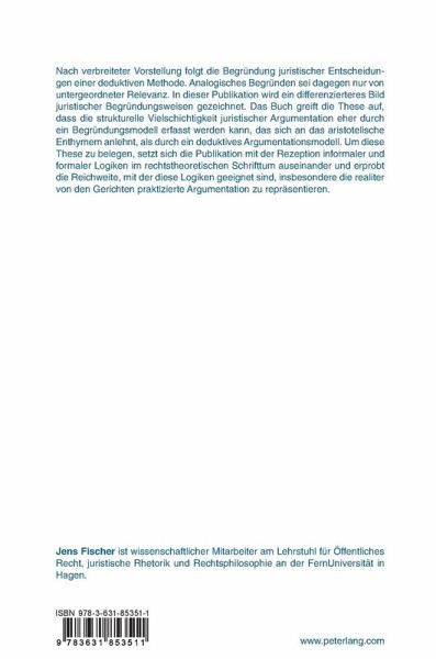 Nach verbreiteter Vorstellung folgt die Begründung juristischer Entscheidungen einer deduktiven Methode. Analogisches Begründen sei dagegen nur von untergeordneter Relevanz. In dieser Publikation wird ein differenzierteres Bild juristischer Begründungsweisen gezeichnet. Das Buch greift die These auf, dass die strukturelle Vielschichtigkeit juristischer Argumentation eher durch ein Begründungsmodell erfasst werden kann, das sich an das aristotelische Enthymem anlehnt, als durch ein deduktives Argumentationsmodell. Um diese These zu belegen, setzt sich die Publikation mit der Rezeption informaler und formaler Logiken im rechtstheoretischen Schrifttum auseinander und erprobt die Reichweite, mit der diese Logiken geeignet sind, insbesondere die realiter von den Gerichten praktizierte Argumentation zu repräsentieren.