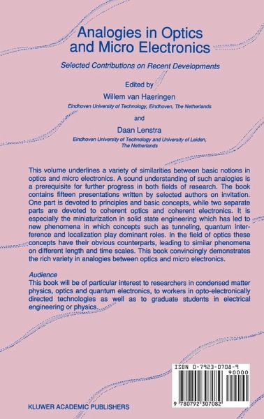 This book gives an account of a number of recent developments in two different subfields of research, optics and micro--electronics. The leading principle in presenting them together in one book is the striking similarity between a variety of notions in these two research areas. We mention in this respect tunneling, quantum interference and localization, which are important concepts in quantummechanics and more specifically in condensed matter physics. Miniaturization in solid state engineering has led to new phenomena in which these concepts play their significant roles. As it is the wave character of electrons which is strongly emphasized in these phenomena one's attention is quite naturally directed to the field of optics in which the above quantum-mechanical notions all seem to have their direct classical wavemechanical counterparts. Both micro--electronics and optics have been and still are in a mode of intensifying activity. The possibilities to technically "translate" devices developed within one research field to similar devices in the other field are strongly increasing. This opens, among other things, a door leading to "quantummechanics" on a macroscopic scale with visible light under relatively easily accessible experimental conditions, or to "wave optics II in the domain of solid state physics. Thinking in terms of analogies is important anyhow, but it is especially the cross-fertilization between optics and micro--electronics which according to the editors will lead to deepened insights and a new type of technology.