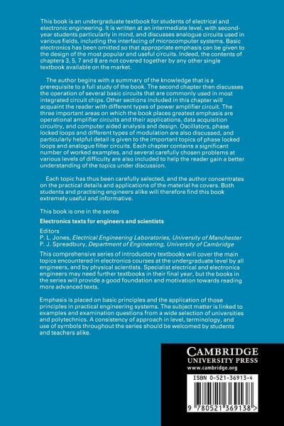 This book is an undergraduate textbook for students of electrical and electronic engineering. It is written at an intermediate level, with second year students particularly in mind, and discusses analogue circuits used in various fields. Basic electronics has been omitted so that appropriate emphasis can be given to the design of the most popular and useful circuits. The contents of chapters 3, 5, 7 and 8 are not covered together by any other single textbook available on the market. Each chapter also contains a significant number of worked examples and several carefully chosen problems at various levels of difficulty. Each topic has been carefully selected, and the author concentrates on the practical details and applications of the material he covers. Both students and practising engineers alike will therefore find this book extremely useful and informative.