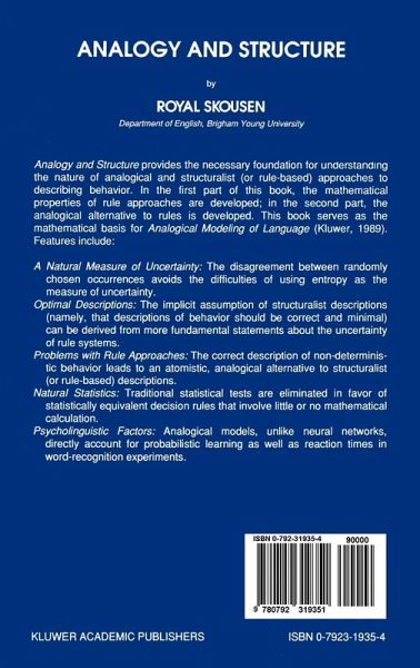 Analogy and Structure provides the necessary foundation for understanding the nature of analogical and structuralist (or rule-based) approaches to describing behavior. In the first part of this book, the mathematical properties of rule approaches are developed; in the second part, the analogical alternative to rules is developed. This book serves as the mathematical basis for Analogical Modeling of Language (Kluwer, 1989). Features include: