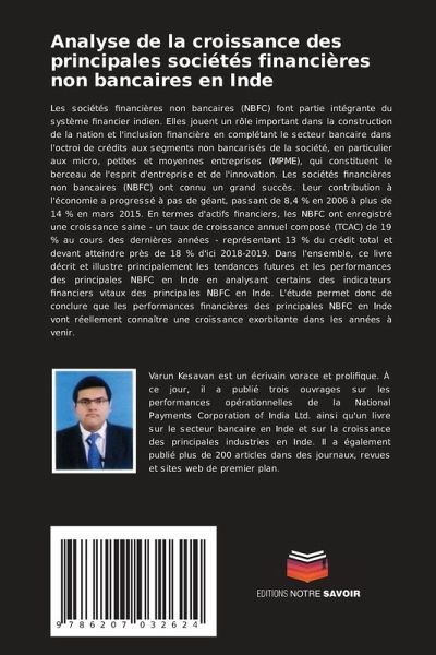 Les sociétés financières non bancaires (NBFC) font partie intégrante du système financier indien. Elles jouent un rôle important dans la construction de la nation et l'inclusion financière en complétant le secteur bancaire dans l'octroi de crédits aux segments non bancarisés de la société, en particulier aux micro, petites et moyennes entreprises (MPME), qui constituent le berceau de l'esprit d'entreprise et de l'innovation. Les sociétés financières non bancaires (NBFC) ont connu un grand succès. Leur contribution à l'économie a progressé à pas de géant, passant de 8,4 % en 2006 à plus de 14 % en mars 2015. En termes d'actifs financiers, les NBFC ont enregistré une croissance saine - un taux de croissance annuel composé (TCAC) de 19 % au cours des dernières années - représentant 13 % du crédit total et devant atteindre près de 18 % d'ici 2018-2019. Dans l'ensemble, ce livre décrit et illustre principalement les tendances futures et les performances des principales NBFC en Inde en analysant certains des indicateurs financiers vitaux des principales NBFC en Inde. L'étude permet donc de conclure que les performances financières des principales NBFC en Inde vont réellement connaître une croissance exorbitante dans les années à venir.
