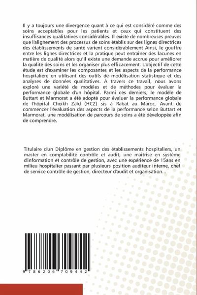 Il y a toujours une divergence quant à ce qui est considéré comme des soins acceptables pour les patients et ceux qui constituent des insuffisances qualitatives considérables. Il existe de nombreuses preuves que l'alignement des processus de soins établis sur des lignes directrices des établissements de santé varient considérablement Ainsi, le gouffre entre les lignes directrices et la pratique peut entraîner des lacunes en matière de qualité alors qu'il existe une demande accrue pour améliorer la qualité des soins et les organiser plus efficacement. L'objectif de cette étude est d'examiner les composantes et les aspects de la performance hospitalière en utilisant des outils de modélisation statistique et des analyses de données qualitatives. A travers ce travail, nous avons exploré une variété de modèles et de méthodes pour évaluer la performance globale d'un hôpital. Parmi ces derniers, le modèle de Buttart et Marmorat a été adopté pour évaluer la performance globale de l'hôpital Cheikh Zaïd (HCZ) sis à Rabat au Maroc. Avant de commencer l'évaluation des aspects de la performance selon Buttart et Marmorat, une modélisation de parcours de soins a été développée afin de comprendre.