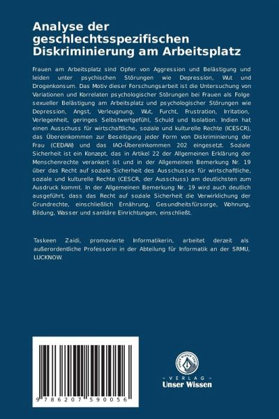 Frauen am Arbeitsplatz sind Opfer von Aggression und Belästigung und leiden unter psychischen Störungen wie Depression, Wut und Drogenkonsum. Das Motiv dieser Forschungsarbeit ist die Untersuchung von Variationen und Korrelaten psychologischer Störungen bei Frauen als Folge sexueller Belästigung am Arbeitsplatz und psychologischer Störungen wie Depression, Angst, Verleugnung, Wut, Furcht, Frustration, Irritation, Verlegenheit, geringes Selbstwertgefühl, Schuld und Isolation. Indien hat einen Ausschuss für wirtschaftliche, soziale und kulturelle Rechte (ICESCR), das Übereinkommen zur Beseitigung jeder Form von Diskriminierung der Frau (CEDAW) und das IAO-Übereinkommen 202 eingesetzt. Soziale Sicherheit ist ein Konzept, das in Artikel 22 der Allgemeinen Erklärung der Menschenrechte verankert ist und in der Allgemeinen Bemerkung Nr. 19 über das Recht auf soziale Sicherheit des Ausschusses für wirtschaftliche, soziale und kulturelle Rechte (CESCR, der Ausschuss) am deutlichsten zum Ausdruck kommt. In der Allgemeinen Bemerkung Nr. 19 wird auch deutlich ausgeführt, dass das Recht auf soziale Sicherheit die Verwirklichung der Grundrechte, einschließlich Ernährung, Gesundheitsfürsorge, Wohnung, Bildung, Wasser und sanitäre Einrichtungen, einschließt.