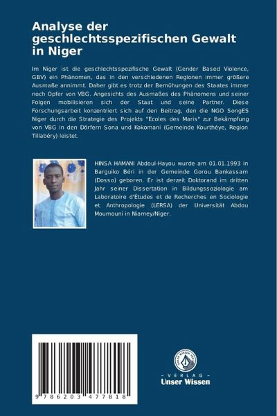 Im Niger ist die geschlechtsspezifische Gewalt (Gender Based Violence, GBV) ein Phänomen, das in den verschiedenen Regionen immer größere Ausmaße annimmt. Daher gibt es trotz der Bemühungen des Staates immer noch Opfer von VBG. Angesichts des Ausmaßes des Phänomens und seiner Folgen mobilisieren sich der Staat und seine Partner. Diese Forschungsarbeit konzentriert sich auf den Beitrag, den die NGO SongES Niger durch die Strategie des Projekts "Ecoles des Maris" zur Bekämpfung von VBG in den Dörfern Sona und Kokomani (Gemeinde Kourthéye, Region Tillabéry) leistet.