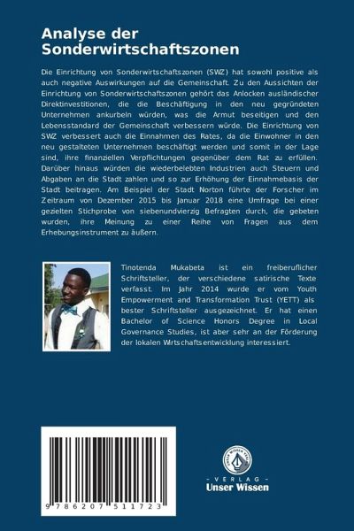 Die Einrichtung von Sonderwirtschaftszonen (SWZ) hat sowohl positive als auch negative Auswirkungen auf die Gemeinschaft. Zu den Aussichten der Einrichtung von Sonderwirtschaftszonen gehört das Anlocken ausländischer Direktinvestitionen, die die Beschäftigung in den neu gegründeten Unternehmen ankurbeln würden, was die Armut beseitigen und den Lebensstandard der Gemeinschaft verbessern würde. Die Einrichtung von SWZ verbessert auch die Einnahmen des Rates, da die Einwohner in den neu gestalteten Unternehmen beschäftigt werden und somit in der Lage sind, ihre finanziellen Verpflichtungen gegenüber dem Rat zu erfüllen. Darüber hinaus würden die wiederbelebten Industrien auch Steuern und Abgaben an die Stadt zahlen und so zur Erhöhung der Einnahmebasis der Stadt beitragen. Am Beispiel der Stadt Norton führte der Forscher im Zeitraum von Dezember 2015 bis Januar 2018 eine Umfrage bei einer gezielten Stichprobe von siebenundvierzig Befragten durch, die gebeten wurden, ihre Meinung zu einer Reihe von Fragen aus dem Erhebungsinstrument zu äußern.