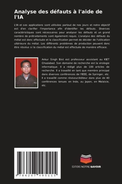 L'IA et ses applications sont utilisées partout de nos jours et notre objectif est d'en clarifier l'importance afin d'identifier les défauts. Diverses caractéristiques sont nécessaires pour analyser les défauts et un grand nombre de prétraitements sont également requis. L'analyse des défauts du métal est donc effectuée et la classification permet de décider de l'utilisation ultérieure du métal. Les différents problèmes de production peuvent donc être résolus si la classification du métal est effectuée de manière efficace.