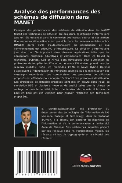 L'analyse des performances des schémas de diffusion dans les MANET fournit des techniques de diffusion. De nos jours, la diffusion d'informations joue un rôle essentiel dans la connexion des noeuds source et destination. Une communication efficace est possible dans les réseaux mobiles adhoc (MANET) parce qu'ils s'auto-configurent en permanence et que l'environnement est dépourvu d'infrastructure. La diffusion d'informations joue donc un rôle important dans diverses applications telles que les applications militaires, éducatives et commerciales. Dans ce travail de recherche, ECBABS, LSB et ATPCB sont développés pour surmonter les problèmes de tempête de diffusion et découvrir l'itinéraire optimal dans les réseaux mobiles. Enfin, les méthodes CBAB et Novel Hybrid Optimal s'appliquent à l'identification de l'itinéraire optimisé et à la minimisation des messages redondants. Une comparaison des protocoles de diffusion proposés est effectuée pour analyser l'efficacité des protocoles de diffusion. Ces protocoles de diffusion proposés sont mis en oeuvre dans l'outil de simulation NS2 et plusieurs mesures de qualité telles que la charge de routage normalisée, le débit, le taux de livraison de paquets et le délai de bout en bout ont été utilisées pour évaluer l'efficacité des techniques proposées.