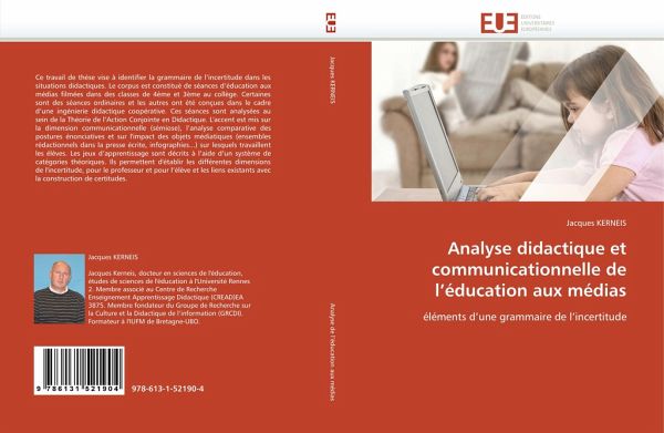 Ce travail de thèse vise à identifier la grammaire de l'incertitude dans les situations didactiques. Le corpus est constitué de séances d'éducation aux médias filmées dans des classes de 4ème et 3ème au collège. Certaines sont des séances ordinaires et les autres ont été conçues dans le cadre d'une ingénierie didactique coopérative. Ces séances sont analysées au sein de la Théorie de l'Action Conjointe en Didactique. L'accent est mis sur la dimension communicationnelle (sémiose), l'analyse comparative des postures énonciatives et sur l'impact des objets médiatiques (ensembles rédactionnels dans la presse écrite, infographies...) sur lesquels travaillent les élèves. Les jeux d'apprentissage sont décrits à l'aide d'un système de catégories théoriques. Ils permettent d'établir les différentes dimensions de l'incertitude, pour le professeur et pour l'élève et les liens existants avec la construction de certitudes.