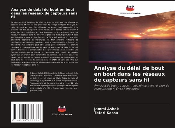 Ce manuel décrit l'analyse du délai de bout en bout pour les réseaux de capteurs sans fil utilisant des protocoles de routage multipath. L'analyse du délai de bout en bout fait référence au temps total nécessaire à la transmission d'un seul paquet sur un réseau, de la source à la destination. Il s'agit d'un des problèmes les plus importants et fondamentaux pour les réseaux de capteurs sans fil. Un nouveau protocole de routage multipath basé sur l'algorithme optimal des fourmis (ACO) a été expliqué à l'aide d'un algorithme approprié et d'exemples. Le MRP améliore l'efficacité de l'agrégation des données, réduisant ainsi la consommation d'énergie. Un algorithme ACO amélioré peut être utilisé pour rechercher les chemins optimaux et sous-optimaux sur la base de nombreux paramètres, ce qui permet d'équilibrer la consommation d'énergie entre les noeuds. En outre, une fonction d'équilibrage de charge est présentée pour choisir de manière dynamique un chemin pour transmettre les données. Ce manuel couvre les bases, les techniques de routage multipath et l'analyse du délai de bout en bout dans les réseaux de capteurs sans fil (WSN) et sera très utile aux étudiants et aux chercheurs qui s'intéressent au domaine de la recherche sur les réseaux de capteurs sans fil.