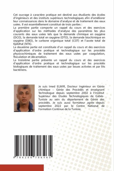 Cet ouvrage à caractère pratique est destiné aux étudiants des écoles d'ingénieurs et des instituts supérieurs technologiques afin d'améliorer leur connaissances dans le domaine d'analyse et de traitement des eaux usées. Il est essentiellement constitué de trois parties :La première partie comporte un rappel du cours et des exercices d'application sur les méthodes d'analyse des paramètres les plus courants des eaux usées tels que la demande chimique en oxygène (DCO), la demande total en oxygène (DTO), la demande biochimique en oxygène (DBO), le carbone organique total (COT) et l'azote total de Kjeldhal (NTK).La deuxième partie est constituée d'un rappel du cours et des exercices d'application d'ordre pratique et technologique sur les procédés physicochimiques de traitement des eaux usées par coagulation, floculation et décantation.La troisième partie présente un rappel du cours et des exercices d'application d'ordre pratique et technologique sur les procédés biologiques de traitement des eaux usées par boues activées et par lits bactériens.