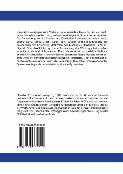 Qualitative Aussagen zum Verhalten ökonomischer Systeme, die als qualitative Modelle formuliert sind, stehen im Mittelpunkt ökonomischer Analyse. Die Anwendung von Methoden des Qualitative Reasoning auf die Analyse ökonomischer Modelle liegt daher nahe. Jedoch sind die Ergebnisse der Anwendung der bekannten Methoden des Qualitative Reasoning unbefriedigend: Eine allmähliche, zyklische Annäherung der Werte qualitativ definierter Variablen wird nicht erkannt. Die in dieser Arbeit vorgestellte Methode qualitativer Simulation interdependenter Zusammenhänge löst das grundlegende Problem der Methoden des Qualitative Reasoning. Dem ökonomischen Analyseinstrumentarium kann die qualitative Simulation interdependenter Zusammenhänge als neue Methode hinzugefügt werden.
