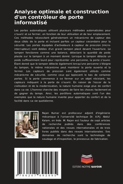 Les portes automatiques utilisent plusieurs méthodes automatisées pour s'ouvrir et se fermer, en fonction de leur utilisation et de leur emplacement. Ces méthodes nécessitent généralement un mécanisme de capteur des deux côtés de la porte et incluent parfois un capteur secondaire pour la sécurité. Les portes équipées d'activateurs à capteur de pression (micro-interrupteur) sont dotées d'un grand tampon placé devant l'ouverture. Le tampon fonctionne comme une balance, détectant la quantité de poids placée sur le tampon à un moment donné. Lorsque le tampon détecte un poids suffisamment lourd pour représenter une personne, la porte s'ouvre. Étant donné que le tampon détecte également lorsqu'une personne s'éloigne du tampon, le même mécanisme peut maintenir la porte ouverte et la fermer. Les capteurs de pression sont également utilisés comme mécanisme de sécurité, comme ceux qui tapissent le bas de certaines portes. Si la porte commence à se fermer sur un objet résistant, les capteurs indiquent à la porte de s'ouvrir. En raison de l'essor de la civilisation et de la modernisation, la nature humaine exige plus de confort dans sa vie. L'homme cherche des moyens de faire les choses facilement et de gagner du temps. Ainsi, les portillons automatiques sont l'un des exemples que la nature humaine invente pour apporter du confort et de la facilité dans sa vie quotidienne.