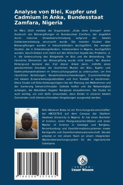 Im März 2010 meldete die Organisation "Ärzte ohne Grenzen" einen Ausbruch von Bleivergiftungen im Bundesstaat Zamfara, der angeblich durch massive Umweltverschmutzung aufgrund der lokalen Golderzverarbeitung verursacht wurde. Die meisten Studien über Bleivergiftungen wurden in Industrieländern durchgeführt. Die wenigen Studien, die in Entwicklungsländern, insbesondere in Nigeria, durchgeführt wurden, beschränkten sich meist auf den klinischen Aspekt des Problems, d. h. die Untersuchung des Bleigehalts im Blut und die Behandlung. Die räumliche Dimension der Bleivergiftung wurde nicht betont. Vor diesem Hintergrund bestand das Ziel dieser Arbeit darin, mithilfe eines georäumlichen Ansatzes die räumlichen Muster der Blei-, Kupfer- und Kadmiumkonzentrationen im Untersuchungsgebiet zu untersuchen, um ihre räumlichen Verteilungen, Konzentrationsschwankungen, Zusammenhänge mit lokalen Erzverarbeitungsaktivitäten und ihre Toxizität zu bestimmen. Diese Studie soll Entscheidungsträgern beider Planung von Maßnahmen und der Sanierung bleiverschmutzter Gebiete helfen und die Notwendigkeit aufzeigen, die Aktivitäten illegaler Bergleute einzudämmen. Die Studie ist auch wichtig, um sich dafür einzusetzen, dass Kinder in unseren lokalen Gemeinden nicht bleiverschmutzten Umgebungen ausgesetzt werden.
