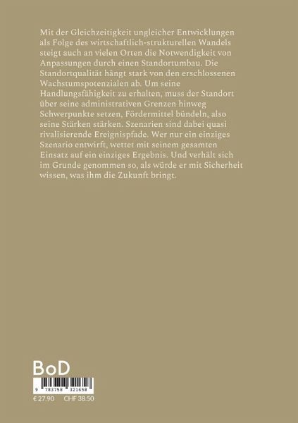 Mit der Gleichzeitigkeit ungleicher Entwicklungen als Folge des wirtschaftlich-strukturellen Wandels steigt auch an vielen Orten die Notwendigkeit von Anpassungen durch einen Standortumbau. Die Standortqualität hängt stark von den erschlossenen Wachstumspotenzialen ab. Um seine Handlungsfähigkeit zu erhalten, muss der Standort über seine administrativen Grenzen hinweg Schwerpunkte setzen, Fördermittel bündeln, also seine Stärken stärken. Szenarien sind dabei quasi rivalisierende Ereignispfade. Wer nur ein einziges Szenario entwirft, wettet mit seinem gesamten Einsatz auf ein einziges Ergebnis. Und verhält sich im Grunde genommen so, als würde er mit Sicherheit wissen, was ihm die Zukunft bringt.