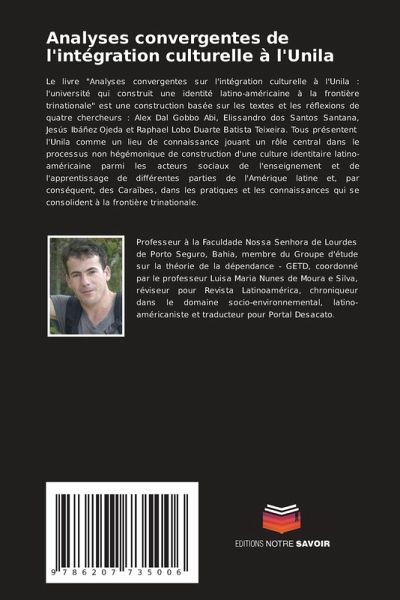 Le livre "Analyses convergentes sur l'intégration culturelle à l'Unila : l'université qui construit une identité latino-américaine à la frontière trinationale" est une construction basée sur les textes et les réflexions de quatre chercheurs : Alex Dal Gobbo Abi, Elissandro dos Santos Santana, Jesús Ibáñez Ojeda et Raphael Lobo Duarte Batista Teixeira. Tous présentent l'Unila comme un lieu de connaissance jouant un rôle central dans le processus non hégémonique de construction d'une culture identitaire latino-américaine parmi les acteurs sociaux de l'enseignement et de l'apprentissage de différentes parties de l'Amérique latine et, par conséquent, des Caraïbes, dans les pratiques et les connaissances qui se consolident à la frontière trinationale.