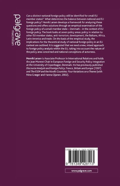 Can a distinct national foreign policy still be identified for small EU member states, and what accounts for the balance between national and EU foreign policy? Henrik Larsen develops an analytical framework for analyzing these questions and offers solutions through an empirical examination of the foreign policy of a small EU member state in the context of EU foreign policy - the case of Denmark. The book looks at seven policy areas: policy towards other EU member states, anti-terrorism, development, the Balkans, Africa, Latin America and trade. On the basis of the empirical study, the implications for the theoretical study of national foreign policy in an EU Context are outlined. It is suggested that we need a new, mixed approach to foreign policy analysis within the EU taking into account the nature of the policy area concerned and national conceptions of actorness.