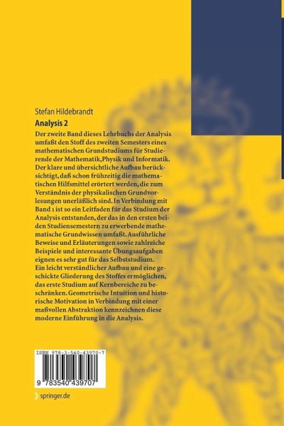 Der zweite Band dieses Lehrbuchs der Analysis umfaßt den Stoff des zweiten Semesters eines mathematischen Grundstudiums für Studierende der Mathematik, Physik und Informatik. Der klare und übersichtliche Aufbau berücksichtigt, daß schon frühzeitig die mathematischen Hilfsmittel erörtert werden, die zum Verständnis der physikalischen Grundvorlesungen unerläßlich sind. In Verbindung mit Band 1 ist so ein Leitfaden für das Studium der Analysis entstanden, der das in den ersten beiden Studiensemestern zu erwerbende mathematische Grundwissen umfaßt. Ausführliche Beweise und Erläuterungen sowie zahlreiche Beispiele und interessante Übungsaufgaben eignen es sehr gut für das Selbststudium. Ein klarer und übersichtlicher Aufbau und eine geschickte Gliederung des Stoffes ermöglichen, das erste Studium auf Kernbereiche zu beschränken. Geometrische Intuition und historische Motivation in Verbindung mit einer maßvollen Abstraktion kennzeichnen diese moderne Einführung in die Analysis.