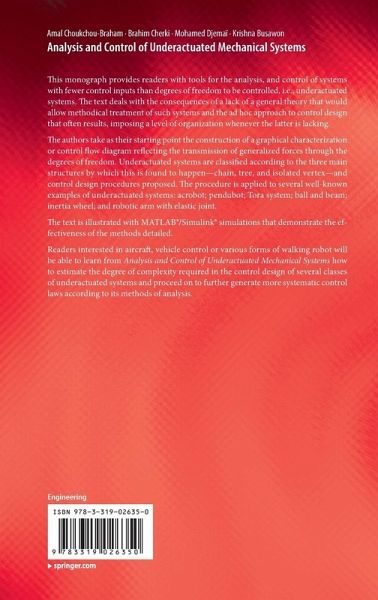Readers interested in aircraft, vehicle control or various forms of walking robot will be able to learn from Underactuated Mechanical Systems how to estimate the degree of complexity required in the control design of several classes of underactuated systems and proceed on to further generate more systematic control laws according to its methods of analysis.