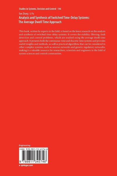 This book, written by experts in the field, is based on the latest research on the analysis and synthesis of switched time-delay systems. It covers the stability, filtering, fault detection and control problems, which are studied using the average dwell time approach. It presents both the continuous-time and discrete-time systems and provides useful insights and methods, as well as practical algorithms that can be considered in other complex systems, such as neuron networks and genetic regulatory networks, making it a valuable resource for researchers, scientists and engineers in the field of system sciences and control communities.