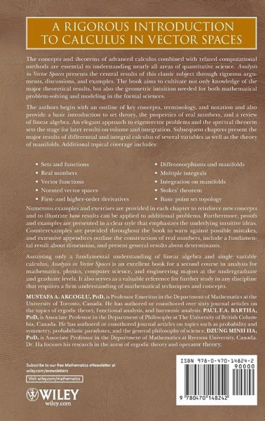 Assuming only a fundamental understanding of linear algebra and single variable calculus, Analysis in Vector Spaces is an excellent book for a second course in analysis for mathematics, physics, computer science, and engineering majors at the undergraduate and graduate levels. It also serves as a valuable reference for further study in any discipline that requires a firm understanding of mathematical techniques and concepts.
