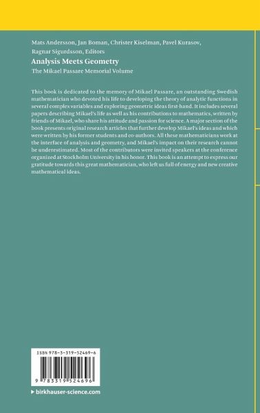 This book is dedicated to the memory of Mikael Passare, an outstanding Swedish mathematician who devoted his life to developing the theory of analytic functions in several complex variables and exploring geometric ideas first-hand. It includes several papers describing Mikael's life as well as his contributions to mathematics, written by friends of Mikael's who share his attitude and passion for science. A major section of the book presents original research articles that further develop Mikael's ideas and which were written by his former students and co-authors. All these mathematicians work at the interface of analysis and geometry, and Mikael's impact on their research cannot be underestimated. Most of the contributors were invited speakers at the conference organized at Stockholm University in his honor. This book is an attempt to express our gratitude towards this great mathematician, who left us full of energy and new creative mathematical ideas.
