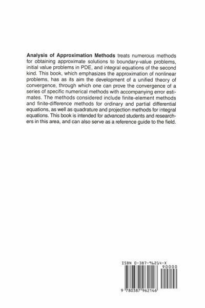 This book is primarily based on the research done by the Numerical Analysis Group at the Goethe-Universitat in Frankfurt/Main, and on material presented in several graduate courses by the author between 1977 and 1981. It is hoped that the text will be useful for graduate students and for scientists interested in studying a fundamental theoretical analysis of numerical methods along with its application to the most diverse classes of differential and integral equations. The text treats numerous methods for approximating solutions of three classes of problems: (elliptic) boundary-value problems, (hyperbolic and parabolic) initial value problems in partial differential equations, and integral equations of the second kind. The aim is to develop a unifying convergence theory, and thereby prove the convergence of, as well as provide error estimates for, the approximations generated by specific numerical methods. The schemes for numerically solving boundary-value problems are additionally divided into the two categories of finite difference methods and of projection methods for approximating their variational formulations.