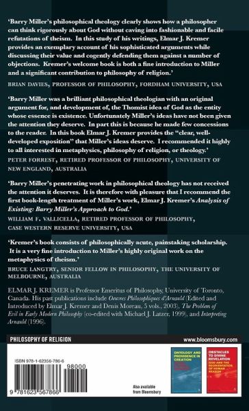 Miller's metaphysics, including his approach to God, is broad, deep, and original, with the potential to make a fruitful contribution to contemporary philosophy. Yet it has not received the critical attention it deserves. Miller's work deserves critical attention because of its thorough and original defense of three highly controversial positions: that existence is a real property of concrete individuals; that it is possible to prove, without assuming any principle of sufficient reason, that there is an uncaused cause of the universe; and that the uncaused cause is the simple God of classical theism. Miller's position on existence is an important alternative in current analytical philosophy to what Miller calls the "Frege-Russell-Quine" theory, and the neo-Meinongian positions of Terence Parsons and Ed Zalta. Miller's argument for an uncaused cause of the universe has been described one of the most ambitious theistic arguments produced by a well-respected, contemporary, analytic philosopher. Analysis of Existing: Barry Miller's Approach to God is the first clear, systematic interpretation of Miller's theistic philosophy.