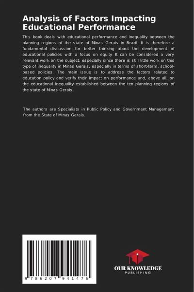 This book deals with educational performance and inequality between the planning regions of the state of Minas Gerais in Brazil. It is therefore a fundamental discussion for better thinking about the development of educational policies with a focus on equity. It can be considered a very relevant work on the subject, especially since there is still little work on this type of inequality in Minas Gerais, especially in terms of short-term, school-based policies. The main issue is to address the factors related to education policy and verify their impact on performance and, above all, on the educational inequality established between the ten planning regions of the state of Minas Gerais.