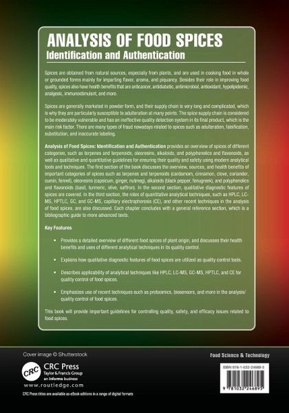The book provides an overview of spices of different categories such as terpenes and terpenoids, oleoresins, alkaloids, and polyphenolics and flavonoids; and it provides qualitative and quantitative guidelines for ensuring their quality and safety using modern analytical tools and techniques.