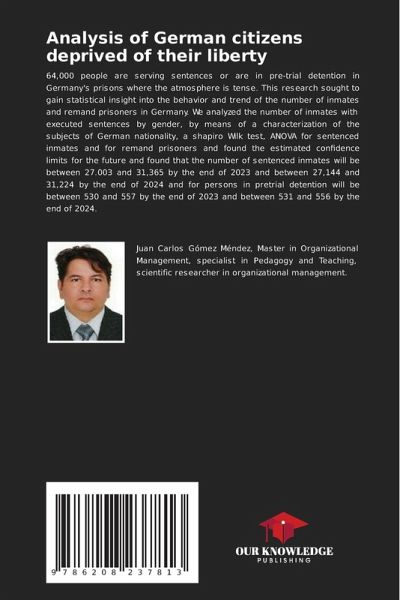 64,000 people are serving sentences or are in pre-trial detention in Germany's prisons where the atmosphere is tense. This research sought to gain statistical insight into the behavior and trend of the number of inmates and remand prisoners in Germany. We analyzed the number of inmates with executed sentences by gender, by means of a characterization of the subjects of German nationality, a shapiro Wilk test, ANOVA for sentenced inmates and for remand prisoners and found the estimated confidence limits for the future and found that the number of sentenced inmates will be between 27.003 and 31,365 by the end of 2023 and between 27,144 and 31,224 by the end of 2024 and for persons in pretrial detention will be between 530 and 557 by the end of 2023 and between 531 and 556 by the end of 2024.