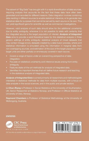 Analysis of Integrated Data aims to provide a solid theoretical basis for this statistical analysis in three generic settings of entity ambiguity.