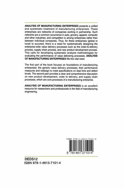 Analysis of Manufacturing Enterprises presents a unified and systematic treatment of manufacturing enterprises. These enterprises are networks of companies working in partnership. Such networks are a common occurrence in auto, grocery, apparel, computer and other industries; and competition is among enterprises rather than between individual companies. Thus, for these enterprises (global or local) to succeed, there is a need for systematically designing the enterprise-wide value delivery processes such as the order-to-delivery process, supply chain process, and new product development process. This calls for developing systematic analysis methodologies for evaluating the performance of value delivering processes. Analysis of Manufacturing Enterprises fills this vital need.