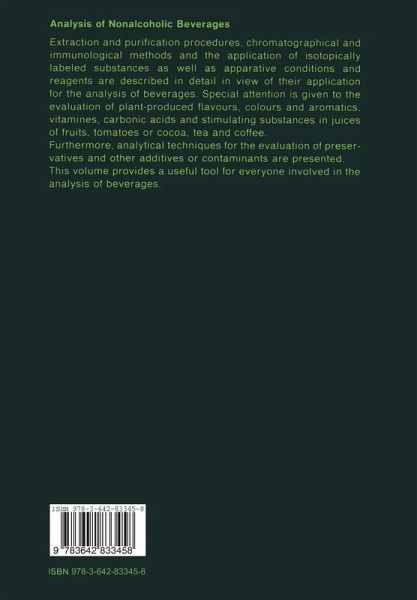 The Enzyme-Linked Immunosorbent Assay (ELISA) in the Beverage Industries: Principles and Practice.- 1 Introduction.- 2 Basic ELISA Procedures for Detection of Antigens.- 3 Materials, Protocols and Comments.- 4 Concluding Remarks.- References.- Carboxylic Acids in Soft Drinks.- 1 Introduction.- 2 Analytical Method.- References.- Amino Acid Pattern for Analysis of Fruit Juice Authenticity.- 1 Introduction.- 2 Development of Inspection Methods for Detecting Adulteration of Fruit Juices or for Testing Their Authenticity.- 3 Sample Preparations for the Analysis of Amino Acids Distribution Pattern in Fruit Juice.- 4 Distribution Order of Abundance of Free Amino Acids Used for Checking Fruit Juice Authenticity.- References.- Spectral Characteristics of Citrus Products.- 1 Introduction.- 2 Absorption Spectra.- 3 Conclusion.- References.- Bitterness in Fruit Juices: Assay of Bitter Principles in Citrus Juices.- 1 Bitterness in Fruit Juices.- 2 Assay of Limonoid Bitter Principles in Citrus Juices.- 3 Assay of Flavonoid Bitter Principles in Citrus Juices.- References.- Analytical Methods for Orange Juice Volatiles.- 1 Introduction.- 2 The Volatile Fraction of Orange Juice.- 3 Raw Material for Orange Juice Volatiles Analysis.- 4 Global Methods of Analysis.- 5 Separative Analysis. Gas Chromatography.- 6 Future Research.- References.- Stable Carbon Isotope Ratios for Detecting Added Sugars in Orange and Apple Juices and Added Citric Acid in Lemon Juices.- 1 Introduction.- 2 Photosynthetic Fractionation of Carbon Isotopes in Source CO2.- 3 Food Applications of Source Variations in [?- 13C] Values.- 4 Conclusion.- References.- Analytical Methods for Tomato Products.- 1 Contribution of Fruit Components to Quality.- 2 Tomato Composition.- 3 Analytical Methods.- References.- LiquidChromatographic Determination of Quinine, Hydroquinine, Saccharin, and Sodium Benzoate in Quinine Beverages.- 1 Abstract.- 2 Introduction.- 3 Method.- 4 Results and Discussion.- References.- Formaldehyde in Coffee.- 1 Introduction.- 2 Formaldehyde in Common Foods.- 3 Analytical Methods for Formaldehyde.- 4 Determination of Formaldehyde in Coffee.- References.- Metabolism and Analysis of Caffeine and Other Methylxanthines in Coffee, Tea, Cola, Guarana and Cacao.- 1 Introduction.- 2 Occurrence.- 3 Metabolism of Caffeine in Caffeine-Containing Plants.- 4 Analysis for Purine Alkaloids in Plants and Foods.- 5 Biochemical Methods Used to Study Purine Alkaloid Metabolism in Plants.- 6 Conclusions.- References.- Colour and Flavour Characteristics of Made Tea.- 1 Introduction.- 2 Tea Husbandry.- 3 Manufacture of Tea.- 4 Colour of Made Tea.- 5 Volatile Flavour and Aroma Compounds of Made Tea.- References.- Analysis of Black Tea Volatiles.- 1 Introduction.- 2 Composition of Black Tea Volatiles.- 3 Formation of Black Tea Volatiles.- References.- Analysis of Cocoa Flavour Components and Flavour Precursors.- 1 Introduction.- 2 Precursors and Nonvolatile Flavour Components.- 3 Cocoa Flavour Volatiles.- References.- The Importance of Plant Analysis to Food Regulation.- 1 Historical Background.- 2 Current Use of Analytical Methods.- 3 Food Standards and Food Labeling.- 4 Food Sanitation.- 5 Food Safety.- 6 Conclusion.- References.