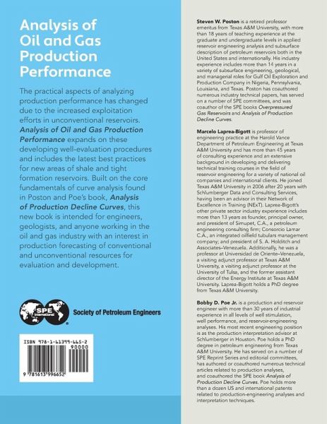 The practical aspects of analyzing production performance has changed due to the increased exploitation efforts in unconventional reservoirs. Analysis of Oil and Gas Production Performance expands on these developing well-evaluation procedures and includes the latest best practices for new areas of shale and tight formation reservoirs. Built on the core fundamentals of curve analysis found in Poston and Poe's book, Analysis of Production Decline Curves, this new book is intended for engineers, geologists, and anyone working in the oil and gas industry with an interest in production forecasting of conventional and unconventional resources for evaluation and development. This book is intended for engineers, geologists, and anyone working in the oil and gas industry with an interest in production forecasting of conventional and unconventional resources for evaluation and development. The majority of the book is concerned with commonly observed oilfield practice and practical solutions to the problems encountered therein. Each chapter begins with a workflow diagram that, in essence, provides the reader with the learning objectives of the chapter. A primary focus of the book is to instill each reader with the competency to solve typical operational problems with minimal exposure to the complexity of the underlying mathematics and equations. The basics and utility of each equation are discussed; however, the focus is on the practical application of the underlying technology to real-life problems. There are numerous illustrations and solutions to typical field problems included for the reader.