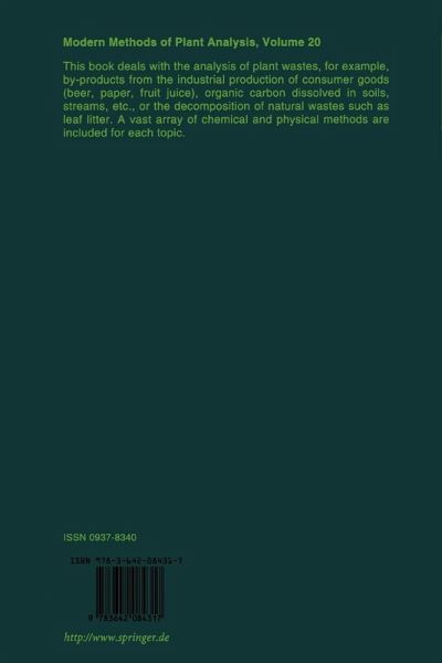 Modern Methods of Plant Analysis When the handbook Modern Methods of Plant Analysis, was first introduced in 1954, the considerations were: 1. the dependence of scientific progress in biology on the improvement of existing and the introduction of new methods; 2. the difficulty in finding many new analytical methods in specialized journals which are normally not accessible to experimental plant biologists; 3. the fact that in the methods sections of papers the description of methods is frequently so compact, or even sometimes so incomplete, that it is difficult to reproduce experiments. These considerations still stand today. The series was highly successful, seven volumes appearing between 1956 and 1964. Since there is still today a demand for the old series, the publisher has decided to resume publication of Modern Methods of Plant Analysis. It is hoped that the New Series will be just as acceptable to those working in plant sciences and related fields as the early volumes undoubtedly were. It is difficult to single out the major reasons for the success of any publication, but we believe that the methods published in the first series were up-to-date at the time and presented in a way that made description, as applied to plant material, complete in itself with little need to consult other publications. Contribution authors have attempted to follow these guidelines in this New Series of volumes. Editorial The earlier series of Modern Methods of Plant Analysis was initiated by Michel V.
