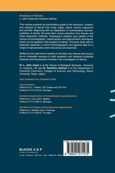 1 Nomenclature and biosynthesis of sterols and related compounds.- 1.1 Introduction.- 1.2 IUPAC-IUB recommended nomenclature for steroids and triterpenoids.- 1.3 The biosynthesis of sterols and triterpenes.- 2 Extraction of sterols from tissues.- 2.1 Introduction.- 2.2 Extraction methods.- 2.3 Separation of sterols from extracted lipids.- 2.4 Examples of the extraction of sterols.- References.- 3 Initial separation methods.- 3.1 Introduction.- 3.2 Digitonin precipitation of sterols.- 3.3 Separation of free sterols and steryl conjugates from a total lipid by adsorption column chromatography.- 3.4 Thin-layer chromatography.- 3.5 The use of mini-columns for the preliminary separation of sterol fractions.- 3.6 Hydrolysis of steryl conjugates.- 3.7 Silver nitrate or argentation chromatography.- 3.8 Autoxidation and isomerization of sterols.- References.- 4 High-performance liquid chromatography of sterols.- 4.1 Introduction.- 4.2 Normal- and reversed-phase HPLC.- 4.3 HPLC detectors.- 4.4 HPLC of sterol derivatives.- 4.5 Influence of column temperature on sterol separation by HPLC.- 4.6 Retention data of sterols on HPLC.- 4.7 Sterol separation factors on HPLC.- 4.8 Differentiation of C-24 epimers of 24-alkylsterols on reversed-phase HPLC.- References.- 5 Gas-liquid chromatography of sterols.- 5.1 Introduction.- 5.2 Packed columns and the stationary phase.- 5.3 Capillary columns.- 5.4 Sample injection and detection.- 5.5 Derivatization of sterols.- 5.6 Preparative GC.- 5.7 Retention time data.- 5.8 Separation factors.- 5.9 GC of the C-24 epimers of 24-alkylsterols.- 5.10 GC of steryl conjugates.- References.- 6 Infrared and ultraviolet spectroscopy of sterols.- 6.1 Introduction.- 6.2 Infrared spectroscopy.- 6.3 Ultraviolet spectroscopy.- References.- 7 Mass spectrometry of sterols.- 7.1 Introduction.- 7.2 Sample ionization.- 7.3 Derivatives used for mass spectrometry of sterols.- 7.4 Mass-spectral fragmentations of the sterol rings.- 7.5 Mass-spectral fragmentations of the sterol side chain.- 7.6 Mass spectra of tetracyclic and pentacyclic triterpene alcohols.- 7.7 Mass spectrometry of steryl conjugates.- References.- 8 1H NMR spectroscopy of sterols.- 8.1 Introduction.- 8.2 Methyl signals.- 8.3 Methine and olefinic protons.- 8.4 Quantitative estimation of C-24 epimeric 24-alkylsterol mixtures.- 8.5 Aromatic solvent induced shifts (ASIS).- 8.6 Lanthanide-induced shifts (LIS).- References.- 9 13C NMR spectroscopy of sterols.- 9.1 Introduction.- 9.2 Methods for signal assignments.- 9.3 13C Chemical shift data of sterols and triterpene alcohols.- References.- 10 One-dimensional and two-dimensional NMR spectroscopy of sterols.- 10.1 Introduction.- 10.2 ID NMR spectroscopy.- 10.3 2D NMR spectroscopy.- 10.4 Connectivity diagrams for use with 2D NMR data.- 10.5 Generalized 1D and 2D strategies for sterols and related compounds.- 10.6 Complete assignments of 1H NMR spectra of sterols.- References.- 11 X-ray crystallography of sterols.- References.- 12 Sources of sterols.- 12.1 Introduction.- 12.2 4-Desmethylsterols.- 12.3 Large-scale purification of 4-desmethylsterols.- 12.4 Sterols with methyl groups at C-4 and/or C-14.- 12.5 Tetracyclic triterpene alcohols.- 12.6 Pentacyclic triterpene alcohols and ketones.- 12.7 The use of inhibitors of sterol biosynthesis to produce specific sterols.- 12.8 Sources of sterols and tetra- and pentacyclic triterpenes.- References.- Appendix 1 The trivial names of sterols.- Appendix 2 Structures of pentacyclic triterpenes.- Appendix 3 Physical data of selected sterols and triterpenes.- Appendix 4 The quantification of sterols.