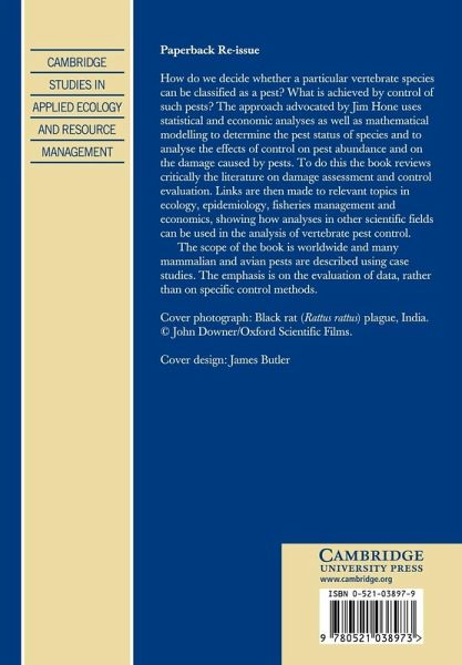 How do we decide whether a particular vertebrate species can be classified as a pest? What is achieved by control of such pests? This book describes the application of statistics, economics and mathematical modelling to the control of bird and mammal pests. The emphasis is on the science underlying vertebrate pest control rather than on the control itself - the latter point distinguishes the book from any other. The scope is worldwide.