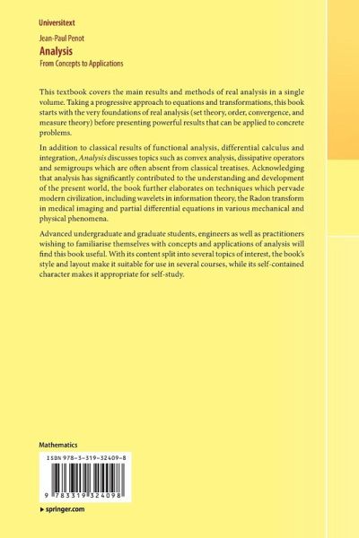 Advanced undergraduate and graduate students, engineers as well as practitioners wishing to familiarise themselves with concepts and applications of analysis will find this book useful. With its content split into several topics of interest, the book's style and layout make it suitable for use in several courses, while its self-contained character makes it appropriate for self-study.
