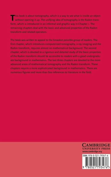 This book is a comprehensive study of the Radon transform, which operates on a function by integrating it over hyperplanes. The book begins with an elementary and graphical introduction to the Radon transform, tomography and CT scanners, followed by a rigorous development of the basic properties of the Radon transform. Next the author introduces Grassmann manifolds in the study of the k-plane transform (a version of the Radon transform) which integrates over k-dimensional planes rather than hyperplanes. The remaining chapters are concerned with more advanced topics, such as the attenuated Radon transform and generalized Radon transforms defined by duality of homogeneous spaces and double fibrations. Questions of invertibility and the range of the Radon transform are dealt with and inversion formulas are developed with particular attention to functions on L2 spaces and some discussion of the case of Lp spaces.